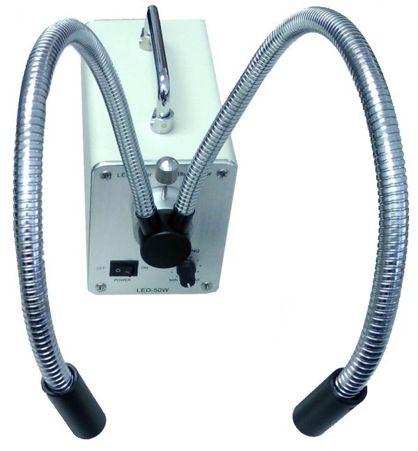 This is a high power dual gooseneck fiber optic precision light that is used for pinpoint accuracy of imaging small field of view subjects and applications that require high magnification lenses.